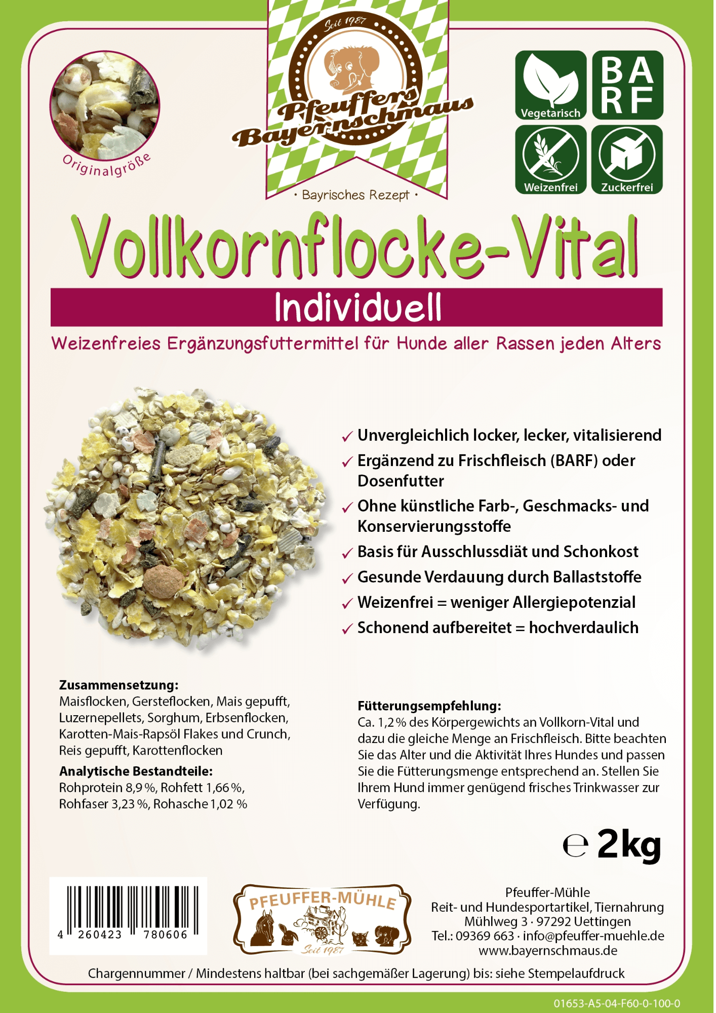 Produktinformationen "Pfeuffers Hundefutter Vollkornflocke Vital 2kg"