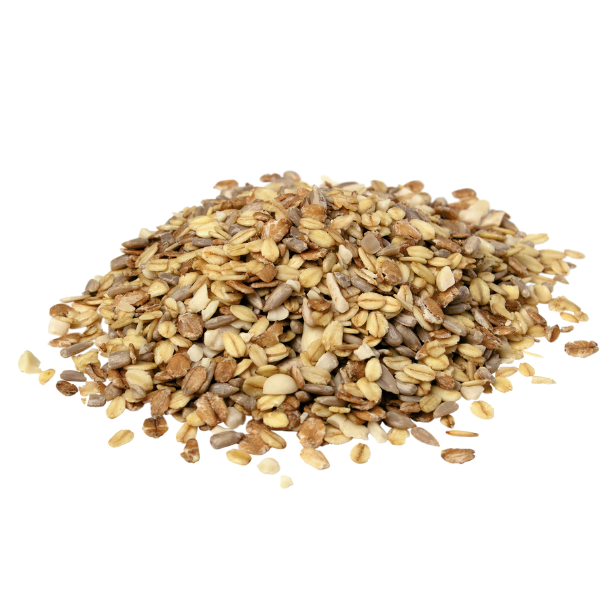 - enthält: Haferflocken, Weizenflocken, geschälte Sonnenblumenkerne, gehackte Erdnüsse, Insektenfett und Mineralien